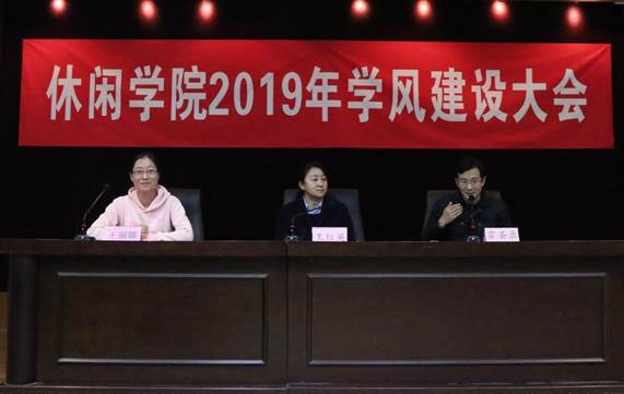 本网讯 为深入贯彻全国高校思想政治工作会议精神,进一步加强教风学风建设,把思想政治工作贯穿教育教学全过程;不断提高人才培养质量,服务学生全面发展成长成才,休闲学院于3月6日下午在学生活动中心二楼报告厅分别召开了2019年本科生、研究生学风建设大会。休闲学院院长王红英、党总支书记霍圣录、党总支副书记王丽娜、各年级辅导员以及学院全体研究生和本科生参加会议,会议分别由研究生辅导员孙一可、本科生辅导员李文阁主持。