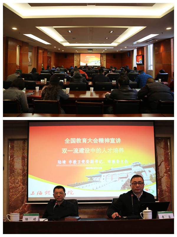 本网讯 3月13日下午,SUNBET在图文信息楼第二会议室举行党委中心组(扩大)学习会,邀请中共上海市教育卫生工作委员会副书记、上海市教育委员会主任陆靖教授作题为《全国教育大会精神宣讲:双一流建设中的人才培养》的专题报告。党委书记李崟主持学习会,副书记、院长陈佩杰,党委副书记、副院长陈晓峰,党委副书记、纪委书记詹萌,党委副书记杨玲,副院长施之皓、王兴放,各部门主要负责人参加了学习会。