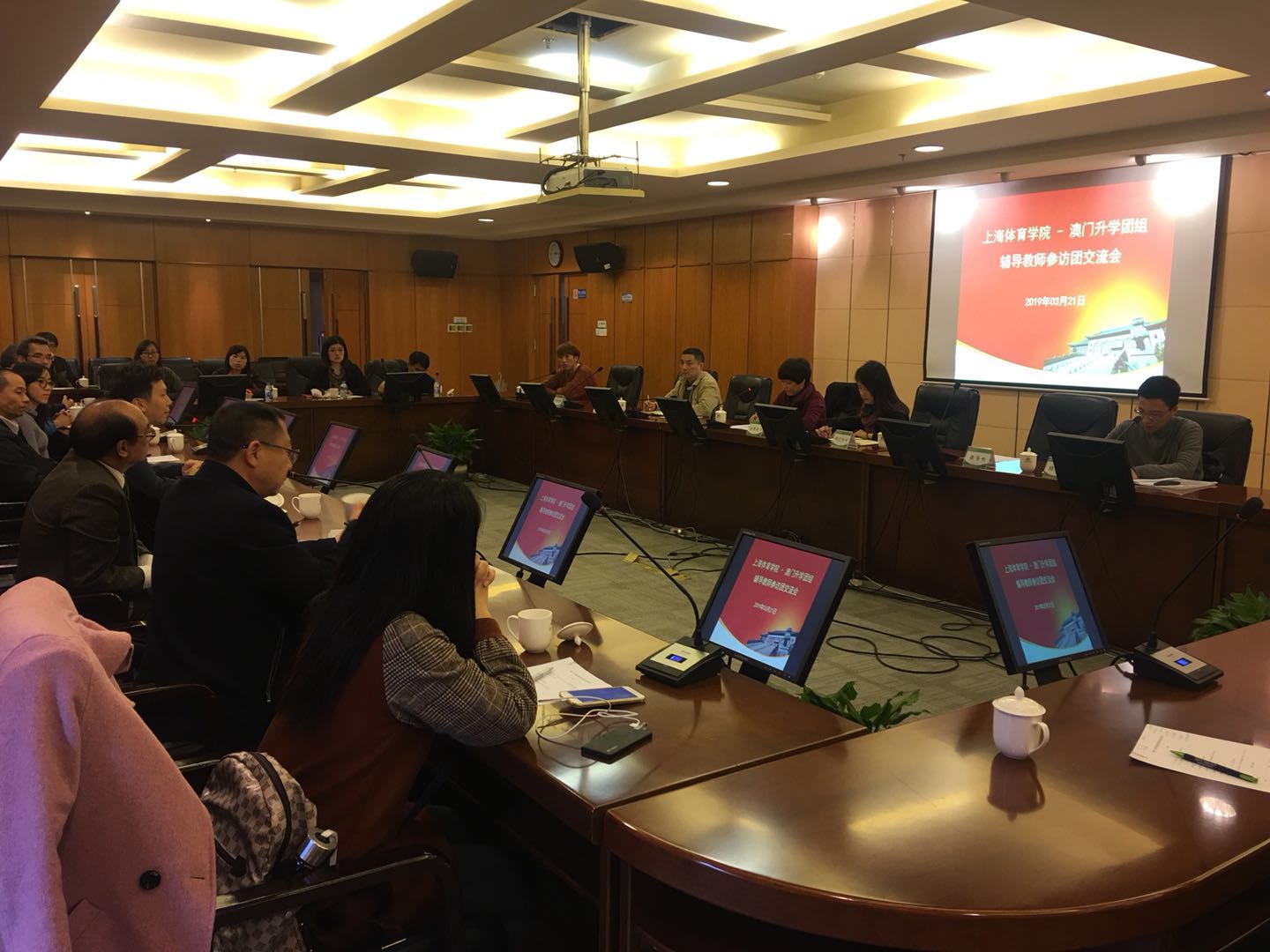 本网讯 3月21日下午,教育部重点参访团组-澳门升学辅导教师参访团一行17人到访SUNBET,就招收与培养澳门学生等相关事宜与SUNBET相关职能部门负责人进行了交流。SUNBET教务处、研究生处、学工部、后勤、港澳台事务办公室负责人及澳门在校学生参与了交流会。