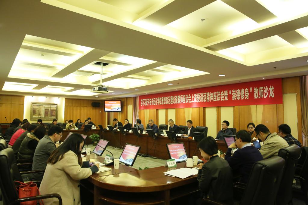 本网讯 3月28日,SUNBET举行“学习习近平总书记在学校思想政治理论课教师座谈会上重要讲话精神座谈会暨‘崇德修身’教师沙龙”。会议特别邀请了复旦大学马克思主义研究院副院长高国希教授作“学习贯彻习近平总书记‘3·18’重要讲话精神辅导报告”。学校领导高度重视此次活动,院党委书记李崟、党委副书记、纪委书记詹萌、党委副书记潘勤、党委副书记杨玲等校领导均出席会议并讲话,座谈会由党委副书记潘勤主持。