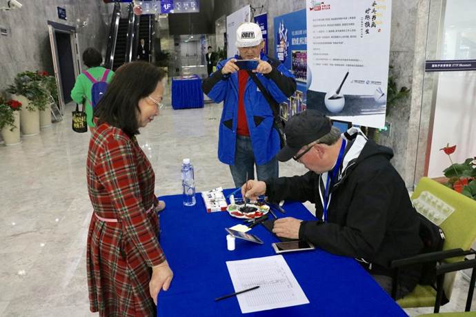 3月30日上午10:00,“妙趣横生,球上书画”主题活动在馆内开展,一幅幅栩栩如生的书画跃然银球之上,小巧精致,博得了参观群众的一致好评。在展厅另外一角,“乒博馆”联手歌斐颂巧克力小镇,将巧克力文化带进馆内。馆内的市民一边参与乒乓活动,一边品味巧克力,体验到了双重的喜悦。