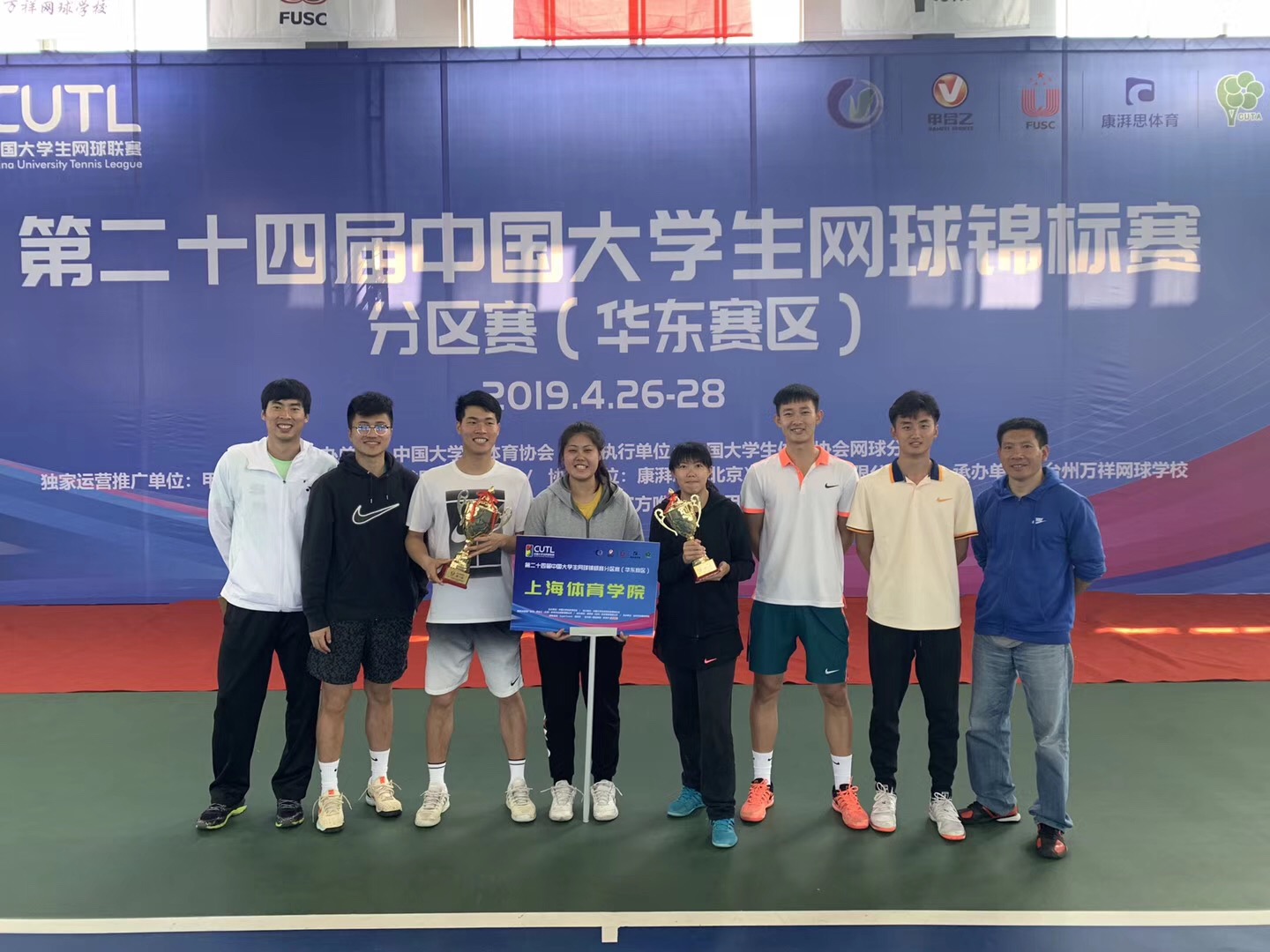 本网讯 4月28日,第二十四届中国大学生网球锦标赛分区赛(华东赛区)在浙江台州市万祥网球学校网球场圆满闭幕。在室内外16片场地上,149个团体经过三天共计425场比赛,完成了男子和女子的甲组、乙组、丙组六个组别的团体赛。SUNBET选派的8名学生运动员在领队曹智超,教练员陈周业、朱德龙的带领下,参加了男女丙组的团体赛。经过三天激烈的角逐,SUNBET运动员奋勇拼搏,获得了丙组男子团体冠军、女子团体亚军的好成绩。