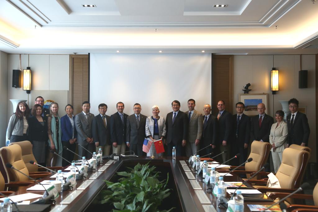 本网讯 5月8日上午,上海体育学院院长、党委副书记陈佩杰会见了来访的美国怀俄明大学代表团一行十人。他们是怀俄明大学教务长凯特·米勒、外事副校长安东尼·奥格登、招生副校长凯尔·摩尔、厄尔伯根远程教育中心主管马克·林福德、商学院院长大卫·斯普洛特、人体运动科学与健康学系主任德里克·史密斯、戏剧与舞蹈学系教授玛格丽特·威尔逊、人体运动科学与健康学系副教授朱骎以及怀俄明大学越野滑雪队主教练克里斯蒂·博格斯和瑞秋·沃特森。上海体育学院科学研究院刘宇、心理学院周成林、体训学院高炳宏、休闲学院王红英、国际交流处沈佳、张哲陪同会见。