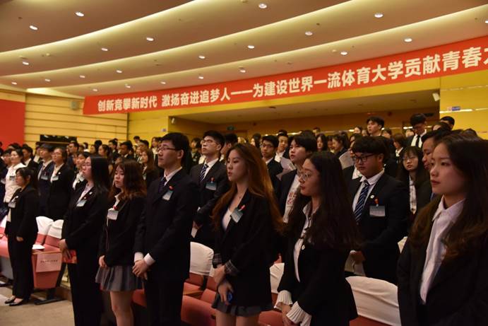 本网讯 2019年6月2日,上海体育学院第三十六次学生代表大会、第七次研究生代表大会在图文信息楼报告厅隆重召开。