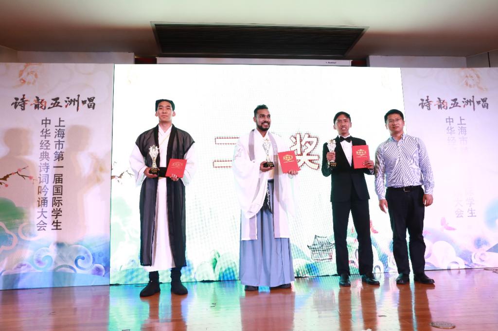 本网讯 2019年6月6日,由上海市高校外国留学生教育研究会、上海大学主办、上海大学国际部国际教育学院承办的“第一届上海国际学生中华经典诗词吟诵大会”在上海大学宝山校区隆重举行。活动特邀上海杨浦区教师进修学院教授刘德隆、扬州大学教授刘勇刚、上海音乐学院研究员杨赛、首都师范大学老师朱立侠、国家一级播音员白鹭五位吟诵专家作为评委莅临指导。上海市外国留学生教育研究会秘书长、上海财经大学国际文化交流学院院长孙冰教授进行开赛致辞。参赛大学有复旦大学、上海交通大学、华东师范大学等18所高校。SUNBET国际教育学院的越南、多哥、刚果(布)、印尼学生联合组队,积极参加了这次比赛。