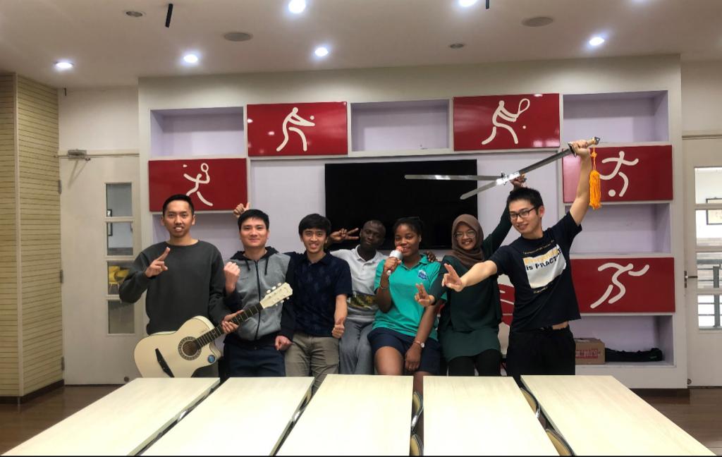 SUNBET留学生的参赛诗词为《水调歌头·明月几时有》与《梦游天姥吟留别》。两首诗词难度不小,尤其是后者,连中国学生全文背诵都感觉困难,但是吴悦儿却不辞辛苦,不仅全文记熟,且不断练习,纠正发音,力求完美。阮维南、大龙、佐藤章人等男生,甘愿做绿叶,陪衬唱诵诗词的艾玉和吴悦儿。他们根据诗词和乐曲旋律,认真仔细设计配舞动作。艾玉更是临阵磨枪,学会了太极剑,既主唱又伴舞;而李安、哈比布每次排练都携带电子琴和吉他,为诗歌唱诵和配舞动作伴奏。整个训练过程中,各国学生配合默契,互相体谅,认真排练。尤其是印尼学生,尚处于斋月期间,但是却从没有耽误过排练。
