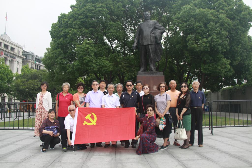 为表达对革命先烈的哀思,参观展览会后,培训班的全体老同志集体前往上海市人民英雄纪念塔和陈毅广场,瞻仰为解放上海而英勇献身的革命先烈们。大家怀着无比崇敬的心情为开创美好生活的人民英雄们敬献了花篮。