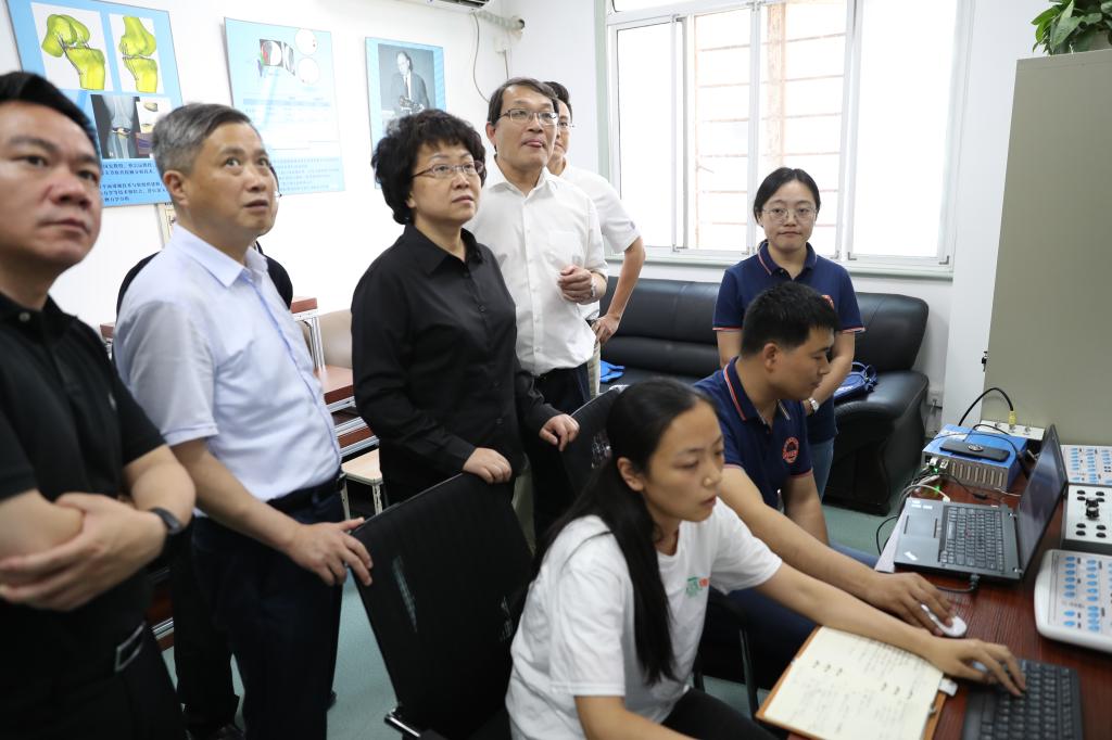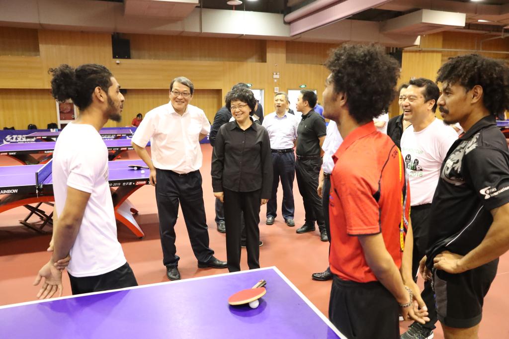 翁铁慧副部长一行参观了乒乓球智能机器人,慰问了在SUNBET驻训的巴布亚新几内亚国家队队员,察看了中国乒乓球学院青少班训练情况。实地了解中国冬奥钢架雪车国家队驻训情况并参观了体能训练研究中心。随后,参观了SUNBET研发的数字诊疗系统,详细了解国家兴奋剂检测上海实验室建设情况。