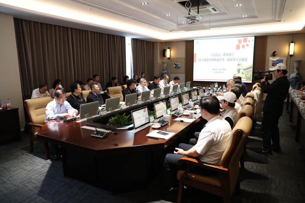 参观结束后,翁铁慧副部长一行与学校党政领导班子进行座谈。党委书记李崟同志汇报了学校贯彻习近平总书记重要讲话精神,构建体育特色“三圈三全”育人体系工作情况。党委副书记、院长陈佩杰同志汇报了学校“一流学科”建设和近阶段改革发展情况。