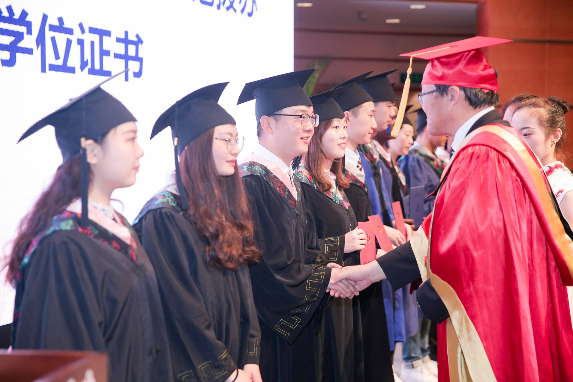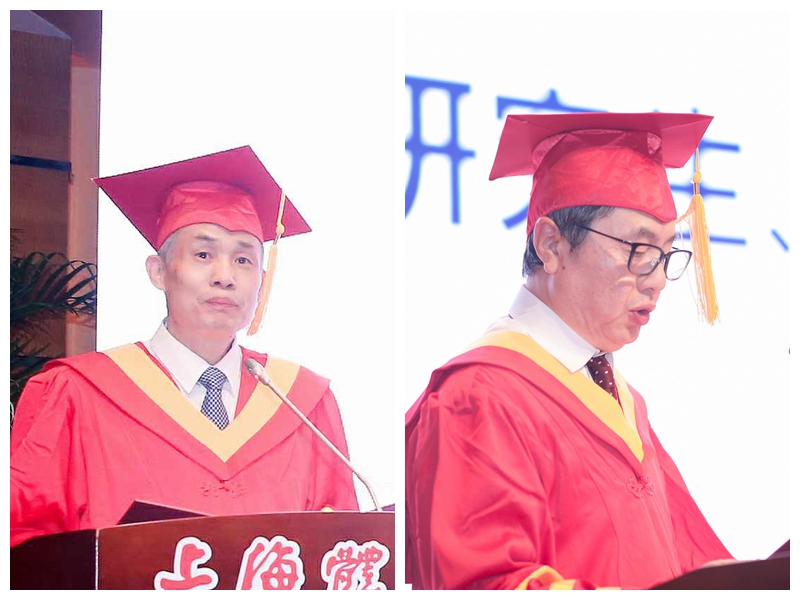 院长陈佩杰为毕业生代表正冠拨苏并颁发学位证书;