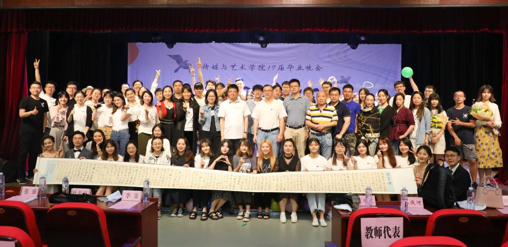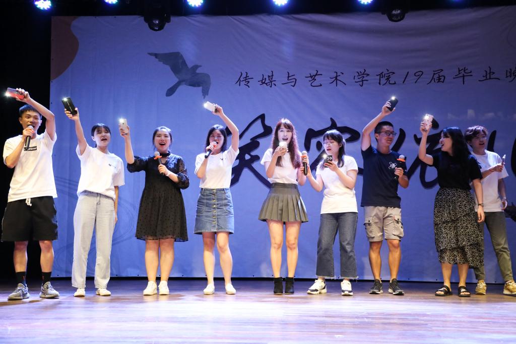 本网讯 6月18日,2019届传艺学院“笑容依旧”毕业晚会在活动中心一楼小剧场举行,上海体育学院党委书记李崟,宣传部部长张盛,学工部、研工部、武装部部长梅朵,传艺学院院长杜友君,党总支书记高艳丽,副书记陈怡,新闻专业负责人肖鸿波,播音专业负责人朱俊河,舞编专业负责人杨珏等专业老师代表以及辅导员,家长代表、全体毕业生出席了活动。