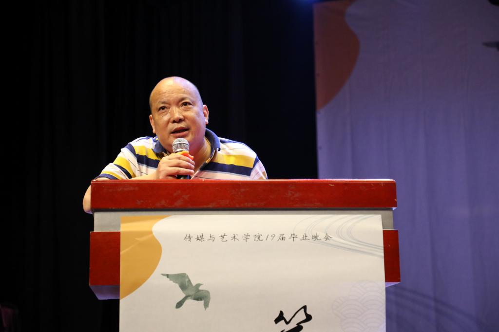 传艺学院院长杜友君寄语毕业生,他坦言,作为老师最幸福的事,就是看着一批批学生学有所成,走向社会。他相信,今天毕业生以体院为荣,明天体院会以毕业生们为傲。杜友君院长作为我们这个集体的大家长,亲切地说:“学校是你们的家,欢迎你们随时回来!”