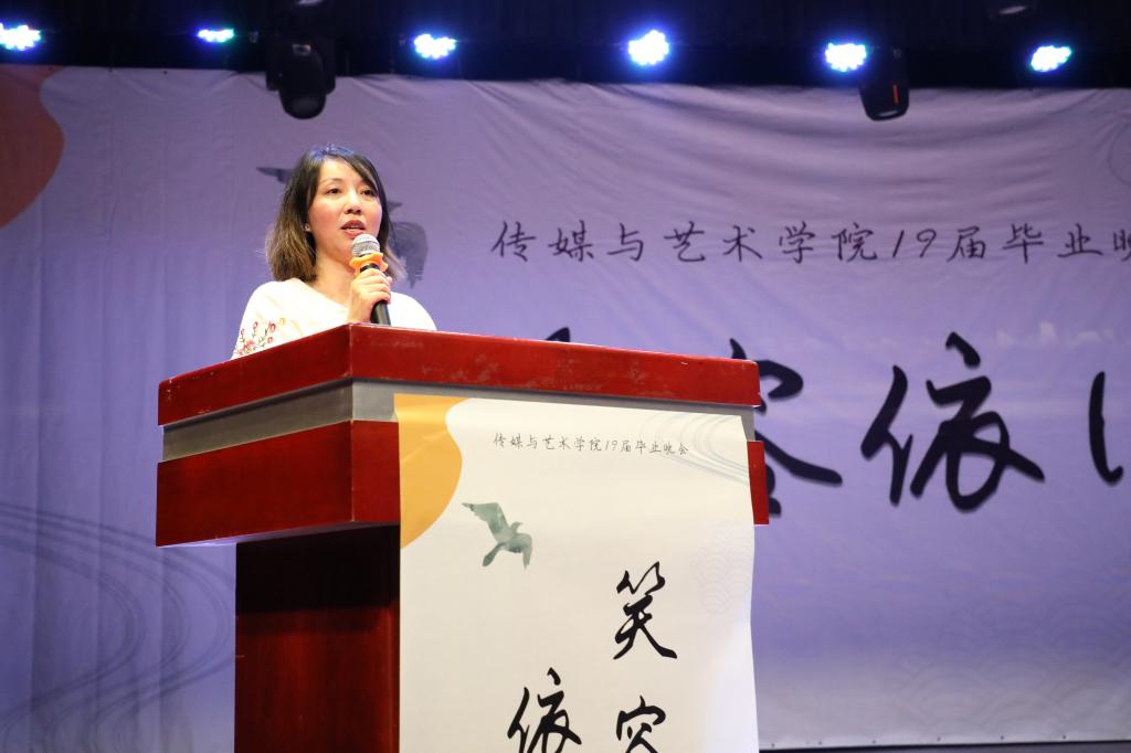 新闻系主任肖鸿波老师语重心长地寄语毕业生,步入社会社会要秉持“三心“:诚心,良心和雄心。播音主持教学团队负责人朱俊河老师希望大家不忘初心,时刻保持那份热情与专业,步入社会创造更美好的未来。舞蹈艺术教学团队负责人杨珏老师诚挚感谢了学院对舞编专业的重视和关心,“在传艺感到非常温暖”,希望同学们不忘母校,前程似锦。随后,优秀毕业生代表张小乐,魏旖发言,感恩母校多年的培养,表达了对上体最美好的祝愿。