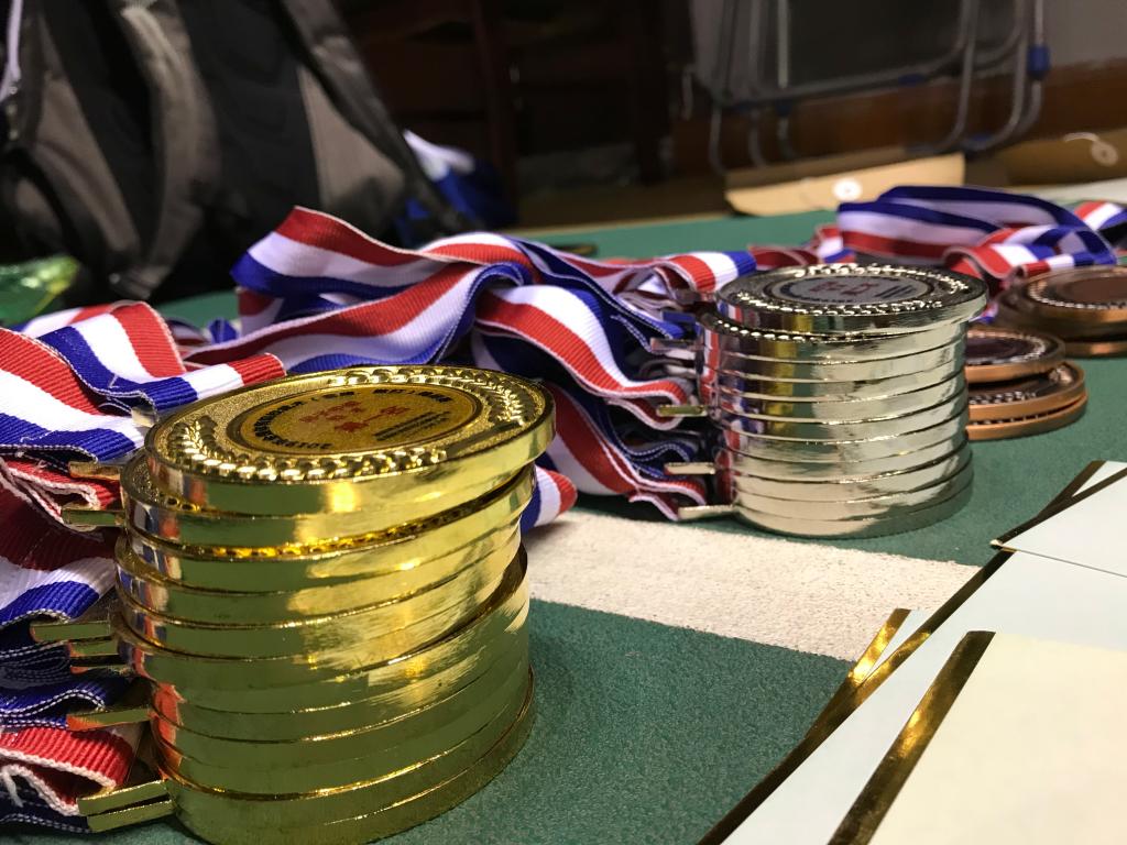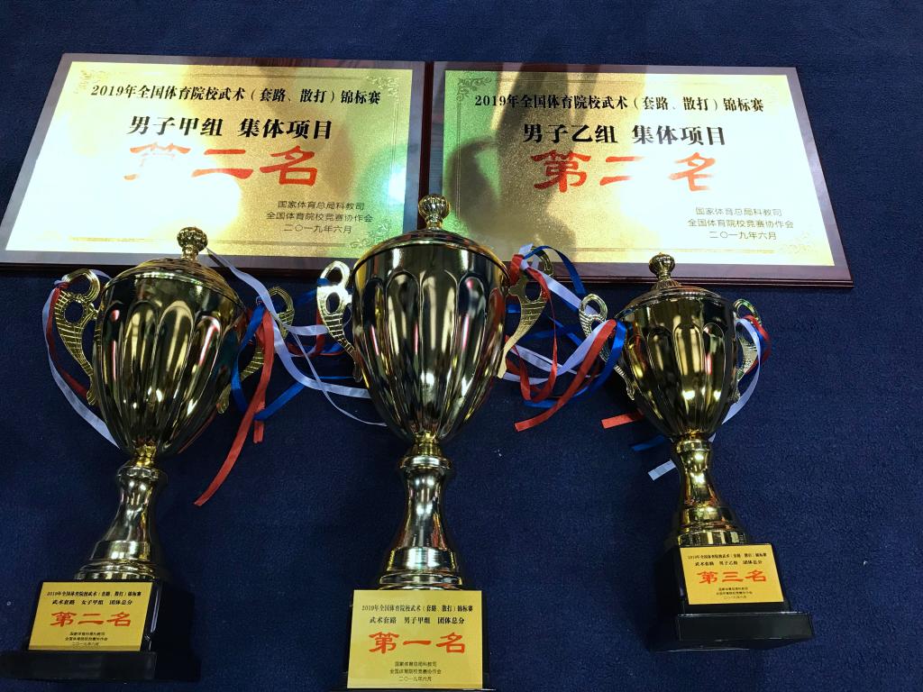 本次比赛我院武术套路队共选派出19名运动员参加了武术套路甲、乙组的比赛。经过赛场上的激烈比拼,上体武术学子勇夺佳绩,共获得12枚金牌、11枚银牌、7枚铜牌,男子甲组团体总分第一名,女子团体总分第二名,男子乙组团体总分第三名的好成绩,并获得“体育道德风尚奖”奖项。其中武术套路甲组获得金牌11枚、银牌9枚、铜牌4枚,取得了甲组各代表队金牌总数第一,这枚最具含金量的男团金牌。武术套路乙组获得金牌1枚、银牌2枚、铜牌3枚。我院散打队共派8人参赛,共获得4个冠军2个亚军1个第三,其中男子甲组江海东获56公斤级冠军,潘寿斌获得男子甲组65公斤级冠军,戚玉梅获得女子甲组60公斤级冠军,黄舒获女子甲组65公斤级冠军,熊晓玉获得女子甲组56公斤级亚军,朱晓蕾获得女子甲组70公斤级亚军,王腾腾获得男子甲组70公斤级第三名。女子甲组团体总分第一名和男子甲组团体总分第二名的好成绩,希望运动员们再接再厉,再创佳绩!