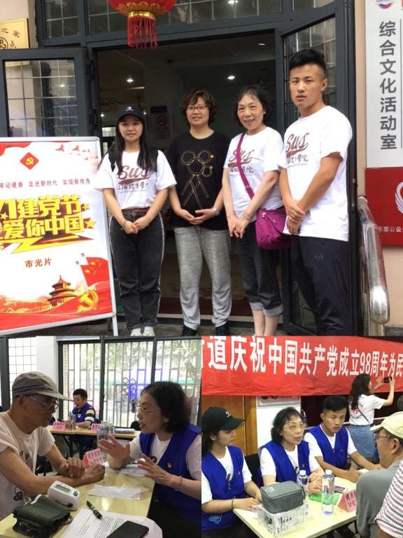 本网讯 7月1日正值中国共产党成立98周年,运科学院王人卫老师带领两位研究生党员参加在市光二居委举办的党建共建服务社区的公益活动。运科师生团队曾多次与社区、街道医院党建共建开展活动,为社区居民开运动处方,指导其科学运动,积极宣传“运动是良药”的理念,为社区居民提供个体化的健康咨询指导服务,充分发挥了党员同志们服务人民的职责,得到很好的反响与好评。