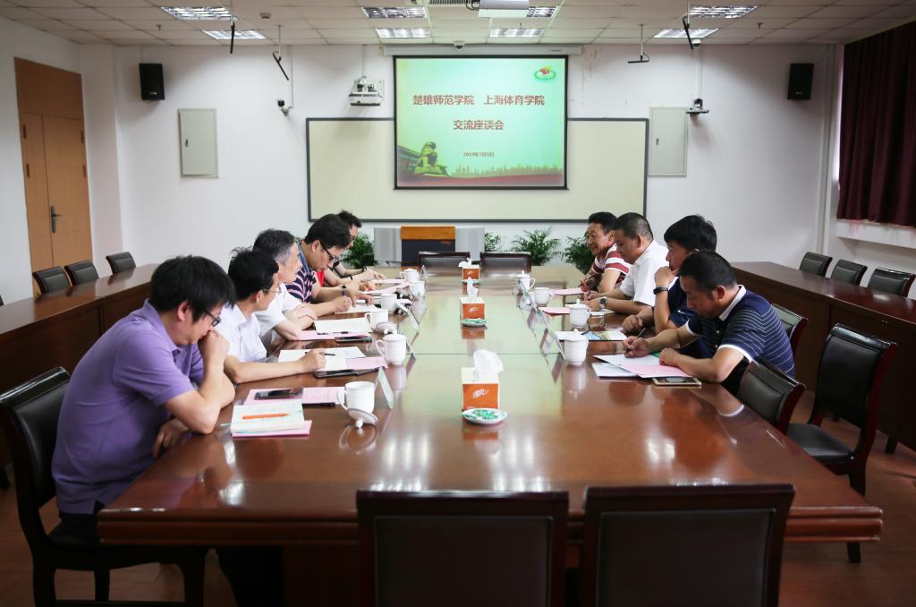 本网讯 7月5日,楚雄师范学院副校长施红星带队一行4人来SUNBET访问交流,SUNBET党委副书记、副院长陈晓峰出席交流座谈会。学工部、教务处、体育教育训练学院、休闲学院、附属竞技体育学校等部门负责同志参加座谈会。