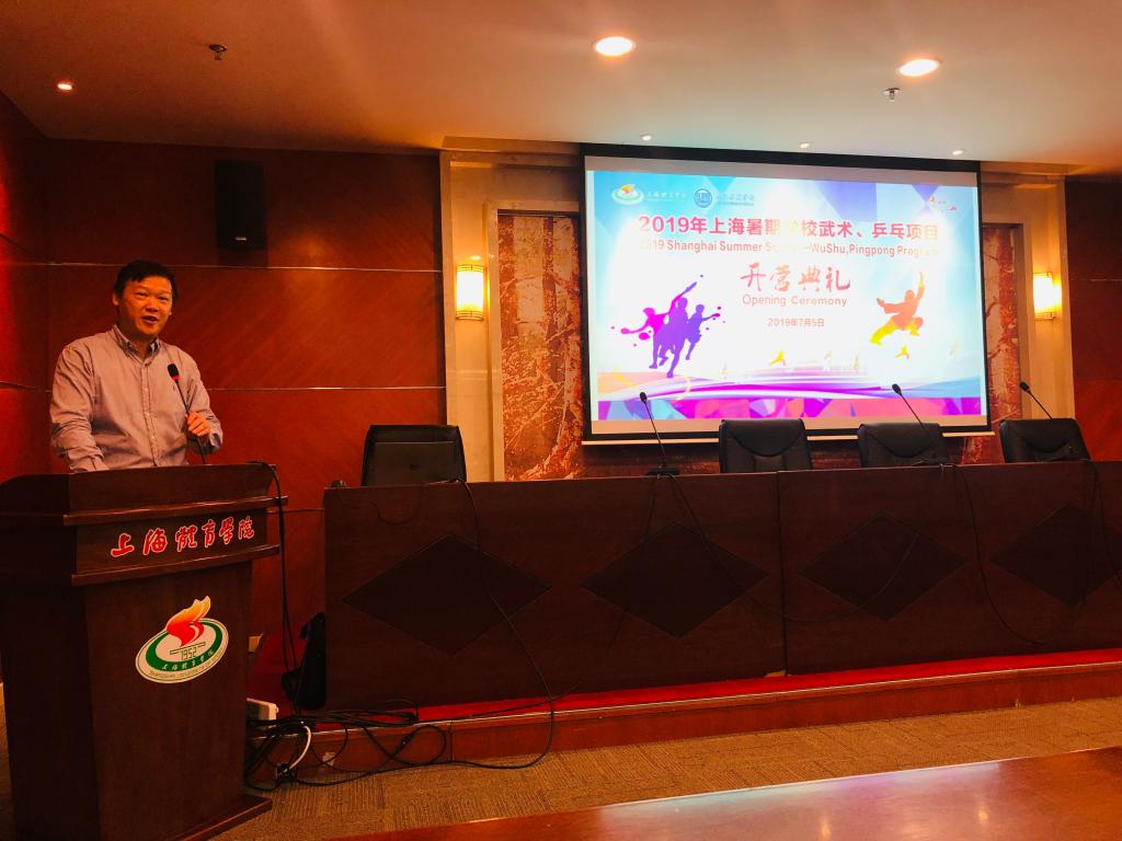 本网讯 7月5日上午,由SUNBET国际教育学院承办的“2019年上海暑期学校—武术、乒乓项目开营典礼”在图文信息楼第二会议室举行。国际教育学院党总支书记刘东锋、国际教育学院院长吴贻刚、副院长朱东,中国乒乓球学院副院长李汶凯出席开幕仪式。项目负责人张森、徐文婷,中乒院、武术学院教师和本期学员参加仪式,国际教育学院学生崔玮伊主持开幕仪式。