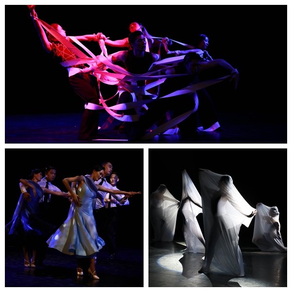 演出以“无径之境”为主题,共有四个篇章,讲述着同学们从初入校园到大三专业课程结束的过程。其中充满期待、惊喜、困境、无奈等,通过不同形式的舞蹈作品阐述属于他们的“成长”。第一幕“余”通过灯光与服装的巧妙设计、音乐与舞蹈种类的灵敏变幻将干净纯粹的情感展现给每一位观众,激情的桑巴和恰恰表现了他们对于大学的美好憧憬和新鲜事物的热切渴望,这是属于16级舞蹈编导班的大学初体验。第二幕“惶惑”则用现代舞的元素表现学习生活中的困扰和无奈,以及一种挣脱、面对未来的无知与无畏,他们不再是初出茅庐想一味寻求家人的庇护的小孩儿。在这一部分,舞者们用红黑相间的色调、简洁的动作展现出大学阶段的恐慌、迷茫以及执着追求、永不放弃的那份坚定。