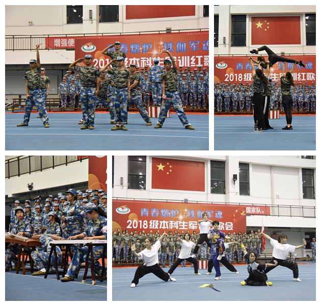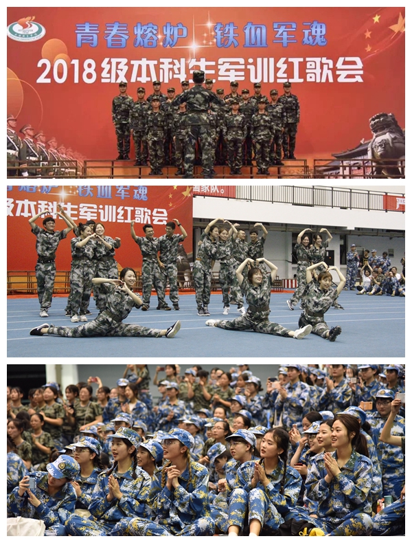 《强军战歌》、《精忠报国》、《大海啊故乡》、《当那一天来临》、《歌唱祖国》、《我爱你中国》、《走向复兴》等众多脍炙人口的红色歌曲不断将全场的激情点燃,唱出了同学们的激情与梦想,更展现了团结、奋发、向上、有为的绿瓦学子的青春形象。各连队的同学们队列整齐,着装统一,上下场井然有序,用“准军人”的气势唱出了青春的力量,豪迈的歌声和着昂扬的旋律在田径馆上空久久回荡。