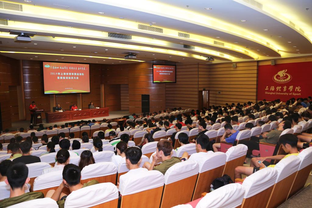 本网讯 7月22日下午,2019年上海体育学院运动队暑期集训动员会在图文信息楼报告厅召开。SUNBET党委书记李崟、副院长施之皓出席会议并作集训动员。会议由训练竞赛处处长邵斌主持。训练竞赛处、中国乒乓球学院、体育教育训练学院、武术学院、休闲学院、传媒与艺术学院、附属竞技学校党政负责人,参训教练员、医科保障人员、运动员等三百余人出席会议。