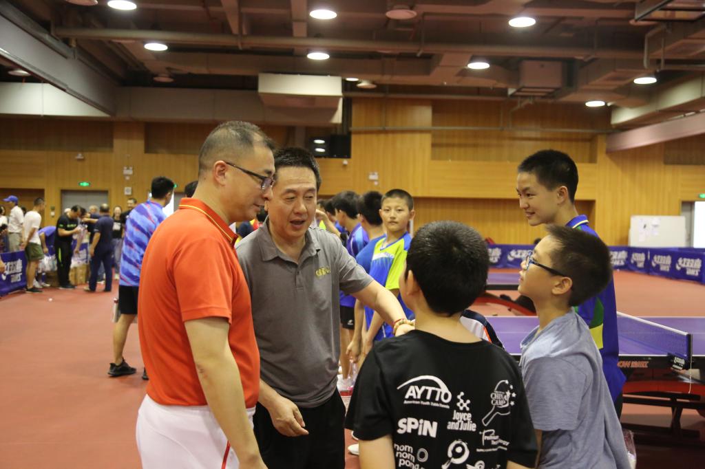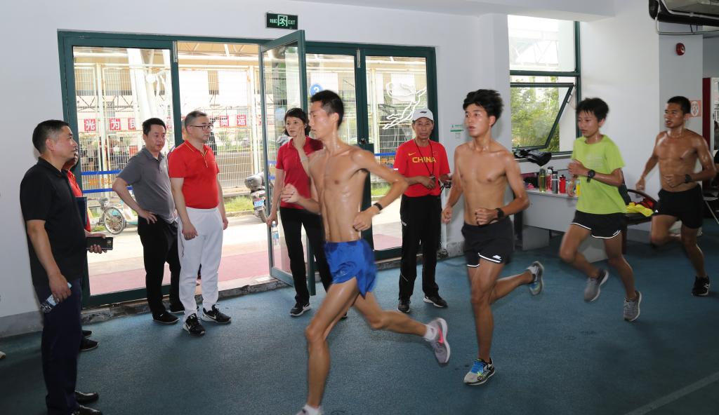 动员大会结束后,校党委书记李崟,副院长施之皓,训练竞赛处处长邵斌,附属竞技学校校长韦蓓,后勤处处长山广,体育教育训练学院党总支书记徐烈,中国乒乓球学院副院长李汶凯等一同前往暑期集训现场慰问SUNBET暑期留校集训备战的一线的教练员和运动员。