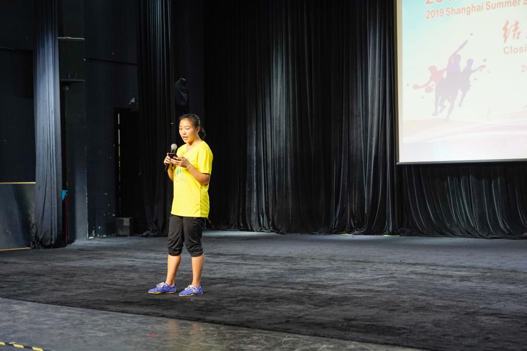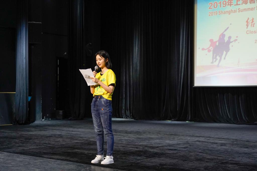 来自国教学院的志愿者代表刘潞漾向大家分享了自己在暑期学校中的感受。她将本次志愿经历当作是一次改变自我的机遇一次自我提升的挑战并且也切身体验到了不同文化、背景、价值观互相交融的过程,这对于学习外语是一次难得的体验。最后表达了希望大家通过在暑期学校中学有所成,以及结下的友谊能够成为大家共同的一笔财富的愿望。