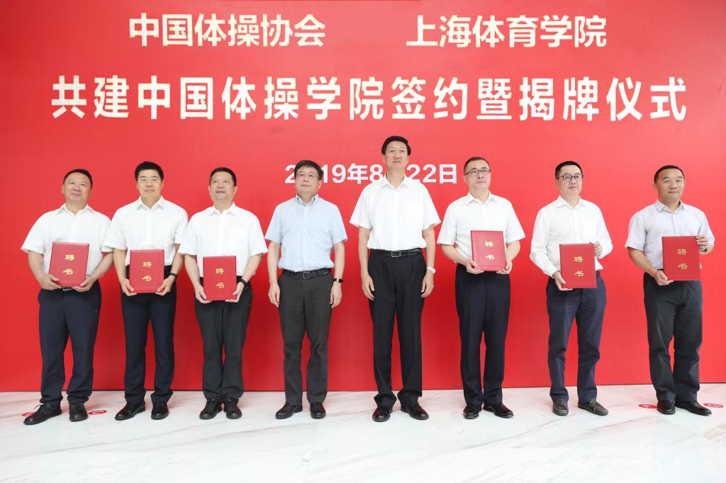 本网讯 8月22日,中国体操学院共建签约暨揭牌仪式在上海体育学院举行。国家体育总局副局长高志丹、上海市副市长陈群为中国体操学院揭牌,并为学院理事会理事长、执行理事长和副理事长颁发聘书。国际体操联合会主席渡边守成发来贺词。国家体育总局、中国体操协会、上海市教育委员会、上海市体育局相关负责人,中国体操学院理事会理事,及体操运动世界冠军等出席签约暨揭牌仪式。