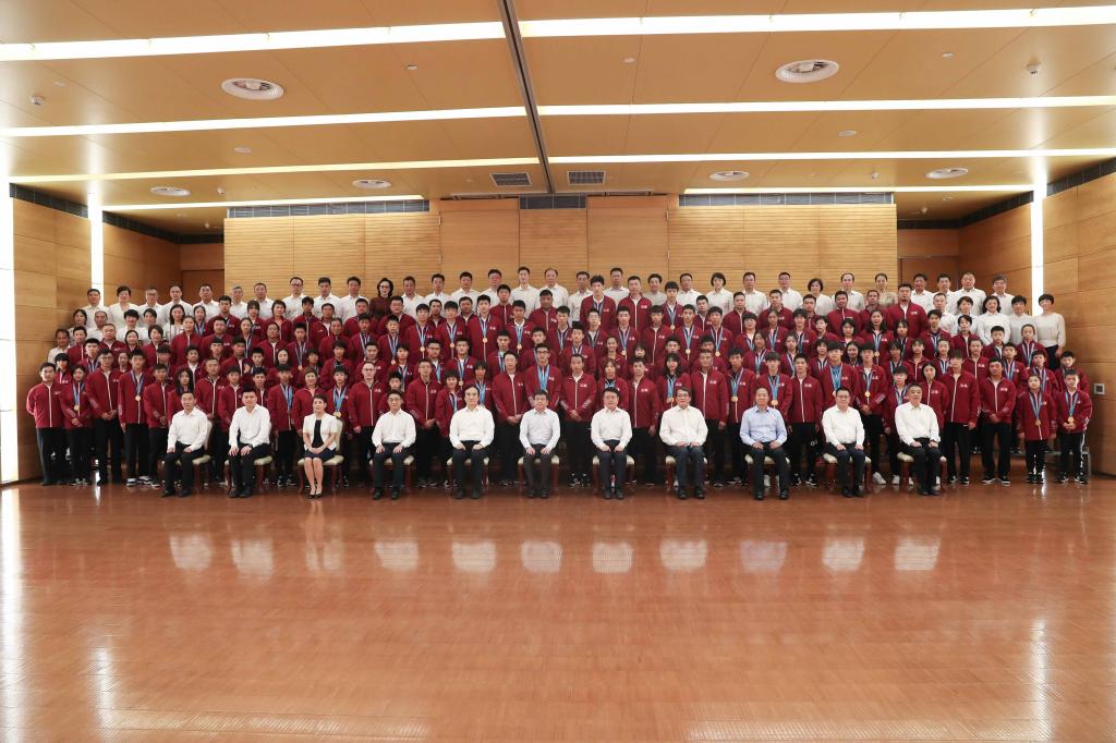本网讯 8月29日,第二届全国青年运动会上海市代表团在东体大厦召开总结表彰大会。上海市副市长、二青会上海代表团团长陈群出席,并在会前接见了获奖教练员、运动员和有关单位代表。SUNBET党委副书记、院长陈佩杰应邀出席表彰会,竞校相关人员接受表彰。