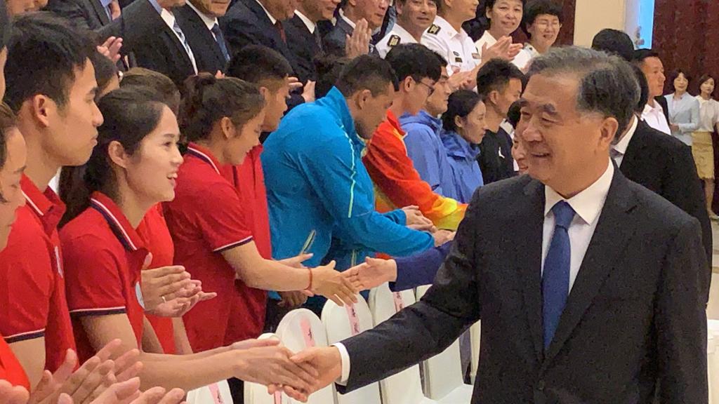 在本次民运会中,全国政协主席汪洋、国务院副总理孙春兰、统战部长尤权及国家民委主任巴特尔等国家领导人接见运动员代表,SUNBET《火彝绳花》壮族参赛队员韦冬玲有幸与国家领导人握手合影。韦冬玲表示非常感谢学校的培养,接见活动让她真切地感受到了习近平总书记提出的“各民族相互了解、相互尊重、相互包容、相互欣赏、相互学习、相互帮助,像石榴籽那样紧紧抱在一起”,爱国情怀油然而生。随后,参会的党员、预备党员、入党积极分子等进行了发言表态,在比赛的同时,将不断加强学习,持续提升思想认识,将“不忘初心、牢记使命”落实在每一场比赛上,切实将之内化于心、外化于形。