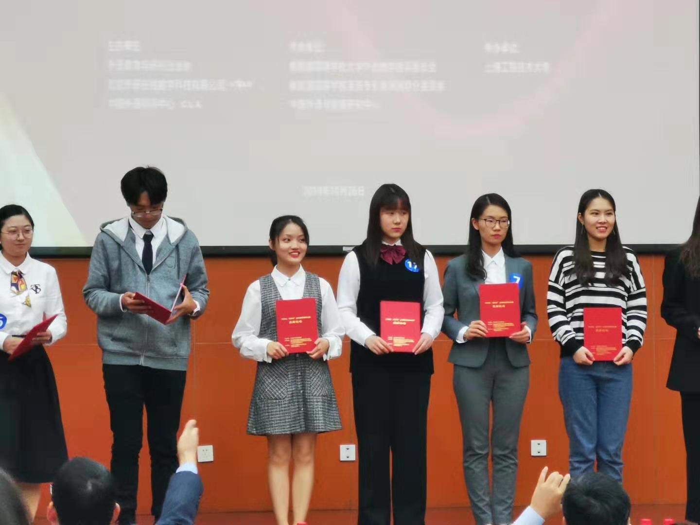 本网讯 10月26日,2019“外研社·国才杯”全国英语演讲大赛(上海赛区复赛)在上海工程技术大学行政楼举行。经历了校内的激烈角逐后,国际教育学院英语系大三学子占梓楠从众多选手中脱颖而出,代表SUNBET参加此次大赛并获得二等奖,指导老师熊前莉获指导老师二等奖。