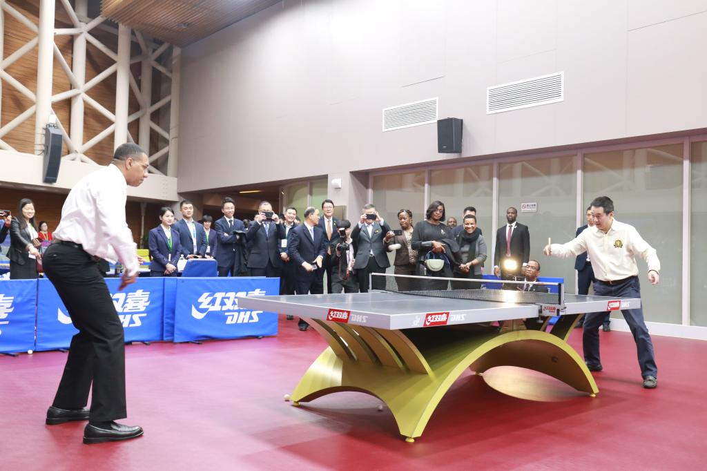 霍尔尼斯总理在一张拍摄于上世纪70年代、中牙正式建交翌年的中国乒乓球代表团访问牙买加时的照片前伫立许久。他表示自己十分欣喜地看到中牙两国之间的关系如春天般欣欣向荣,未来希望够继续加强两国之间体育和人文方面的交流。李崟书记表示,中牙体育领域的交流合作也是中牙文化交流合作的重要组成部分,有很大发展潜力,双方可以进一步探索新的合作机遇。上海体育学院副院长、中国乒乓球学院院长施之皓向霍尔尼斯总理发出邀请,欢迎牙买加乒乓球运动员来到中国乒乓球学院训练学习。