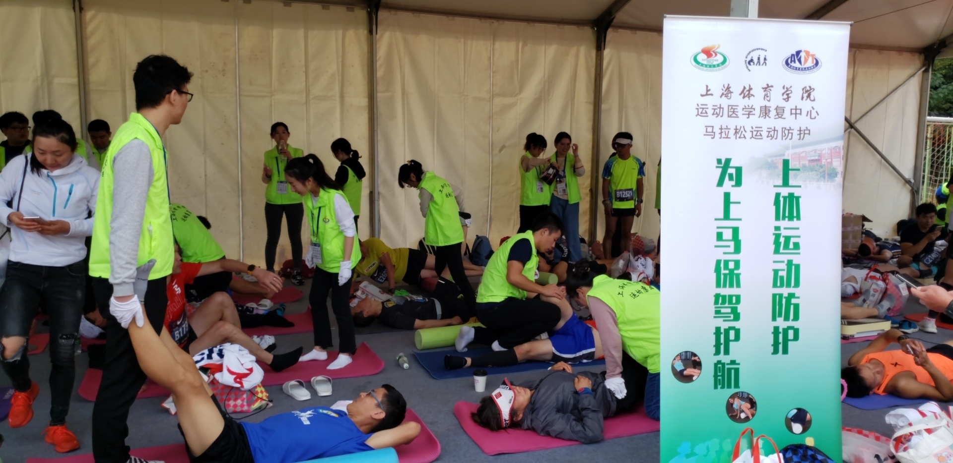 同时作为运动免疫学年会及上海马拉松赛的志愿者,我感到非常的开心。通过两次志愿服务工作,我觉得自己的综合能力提高得到了提升。作为一名运科的学生,我们的志愿工作可以提供与专业相关的服务,比如赛后拉伸、恢复等,更好地体现自己的价值。