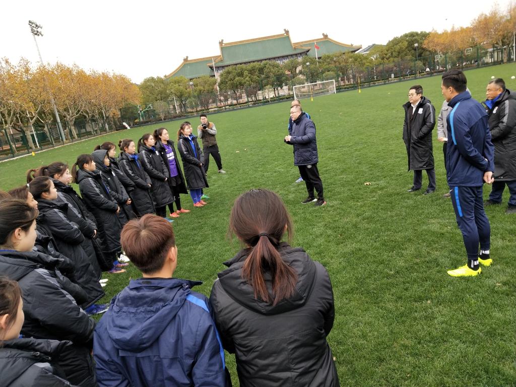 本网讯 11月28日下午3点,SUNBET党委书记李崟、副院长施之皓、体育教育训练学院院长高炳宏冒着寒风,前往中央足球场慰问正在训练的绿地申花上体女足队员。李崟书记首先对女足成功冲上中甲表示了祝贺,并对她们展示出的的绿瓦学子的竞攀精神和不畏强敌的拼搏精神表示了肯定。此外,李崟书记还殷切地叮嘱队员们在训练、比赛之余竭力完成学业。他还希望队员们能够以优异的表现,争取入选国家队,为中国女足重塑辉煌。
