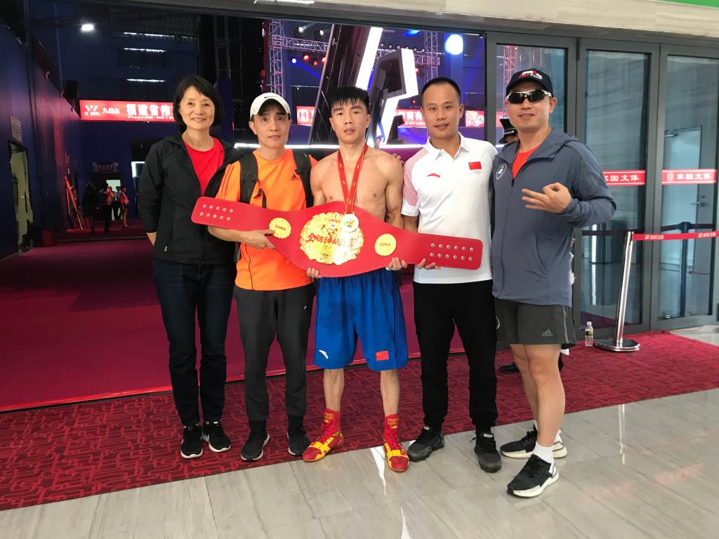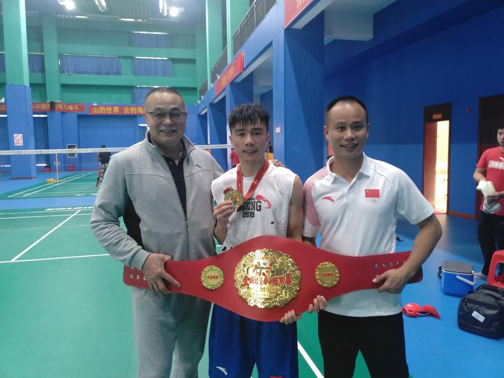 本网讯 12月1日,2019年全国男子拳击冠军赛暨金腰带争霸赛经过一个多月的激烈角逐,在海南白沙落下帷幕。SUNBET选手国家队主力队员胡建关获得52kg级冠军,摘得该级别“拳王金腰带”。施之皓副院长到现场慰问运动员为胡建关加油鼓劲。