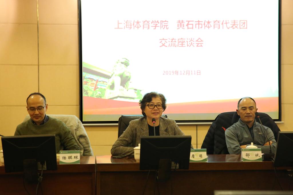 会上,詹萌代表学校对黄石市体育代表团一行的到访表示欢迎,并介绍了近年来学校在学校规模、学科建设、人才培养、科学研究等发展情况。训练竞赛处处长、中国体操学院常务副院长邵斌介绍了中国体操学院筹建情况。