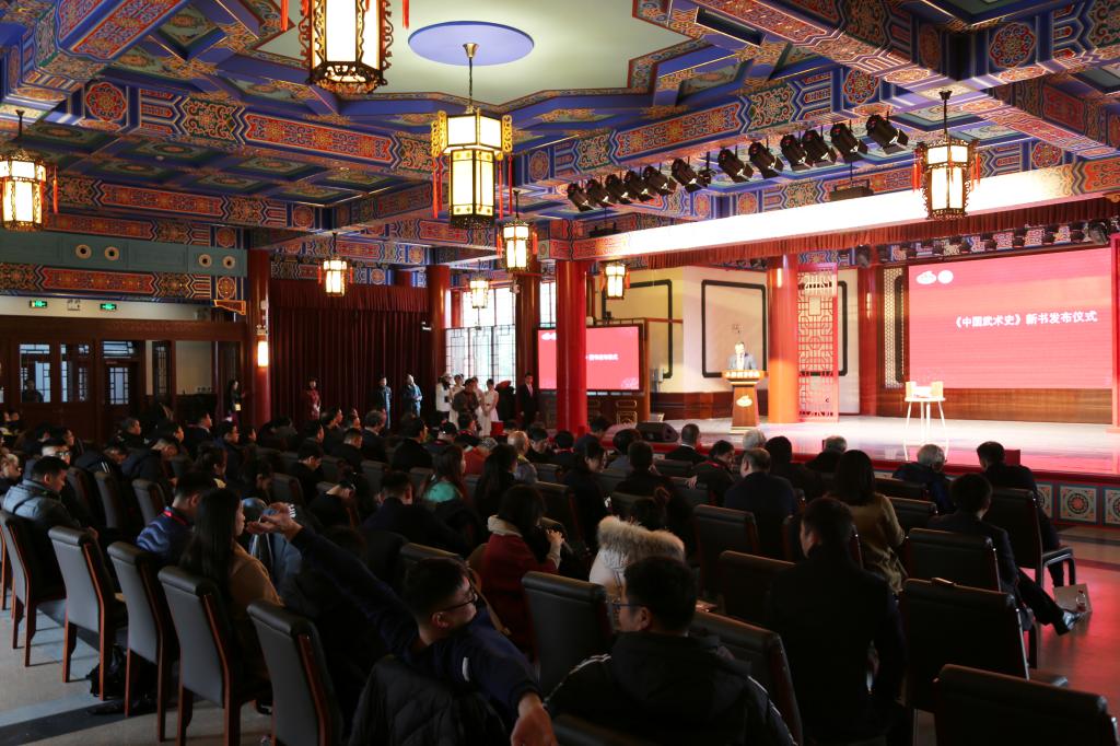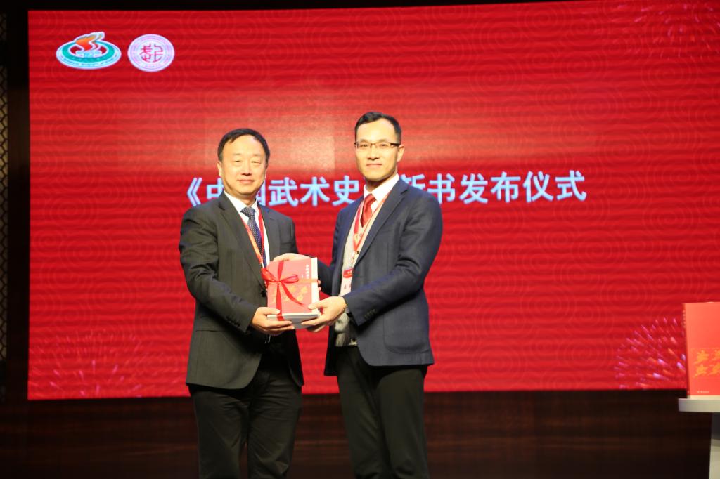同时,会上还举行了由上海体育学院学者团队编写的《中国武术史》新书发布仪式。上海体育学院党委副书记潘勤和高等教育出版社体育分社社长范峰分别对本书的编写和出版情况做了说明。范峰社长指出,该新编教材深入贯彻党的十九大精神、习近平总书记在哲学社会科学工作座谈会上的讲话精神和《关于加强和改进新形势下大中小学教材的意见》《关于实施中华优秀传统文化传承发展工程的意见》等文件精神,以中国史、中国文化史、中国古代军事和兵器史、中国武术发展演变史为主线,融合“编写、教学、研究”,经不断打磨最终编纂而成。该教材在中国大历史视阈下撰写中国武术史,融通中国武术史与中国历史知识,搭建了中国武术史与中国文化史、军事史、教育史、体育史、艺术史、思想史的桥梁,探寻了中国武术文化的起源、形成与发展的历史脉络。