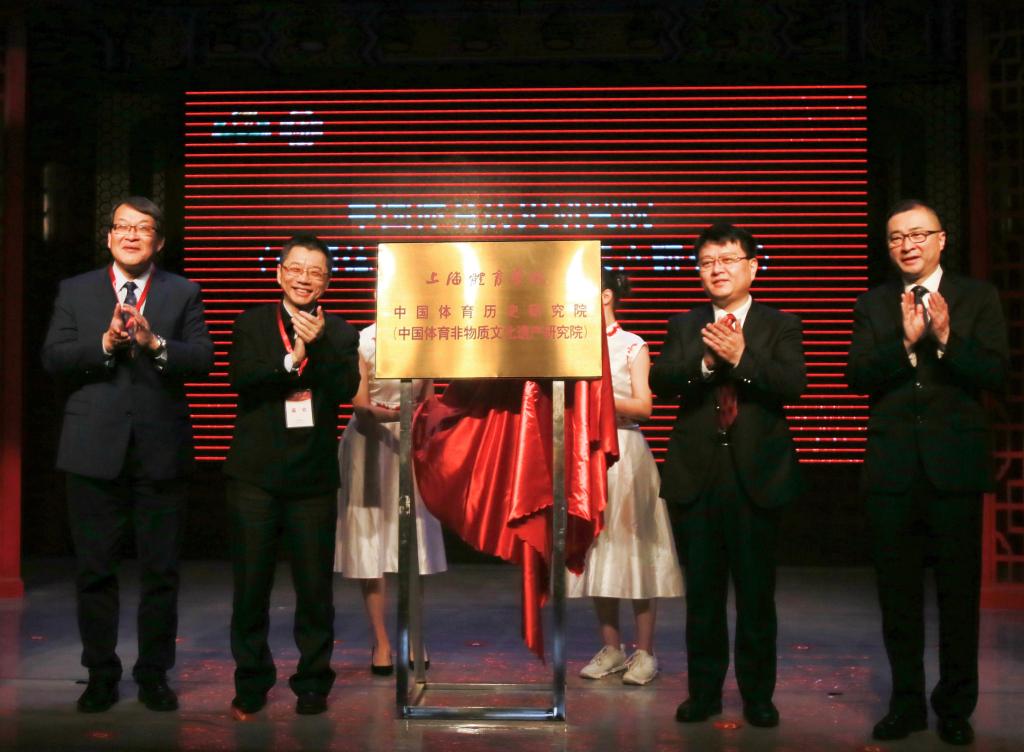 上海市教育委员会主任陆靖、上海市体育局局长徐彬、上海体育学院党委书记李崟和院长陈佩杰为上海体育学院中国体育历史研究院(中国体育非物质文化遗产研究院)揭牌。
