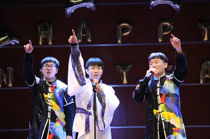 颁奖环节之后是激动人心的精彩歌舞秀,优秀的少年班同学先带来了一支充满青春活力的舞蹈《最初的梦想》。整个晚会洋溢着快乐幸福的气氛,晚会表演也是精彩纷呈,有动听的歌曲《光辉岁月》《青春之歌》《最美的太阳》《超越梦想》,还有精彩的舞蹈表演《Professional Star》《美丽未来》,更有引人爆笑的精彩喜剧表演《谁是大英雄》、《人才难得》、《训练杂谈》。中间的游戏互动环节“?抢板凳”也将晚会推向了高潮。当然还有精彩的个人秀,由教职工子女肖梓霖给大家带来的贯口《挡马》和由本科生李好带来的钢琴独奏《梦中的婚礼》。晚会的最后两个节目是由六位研究生带来的慷慨激昂的诗朗诵《盛世中国》,表达了中乒院对祖国成立七十周年的喜悦和赞美之情。最后,晚会在中乒院全体师生的动情大合唱歌曲《国家》中顺利落下帷幕。
