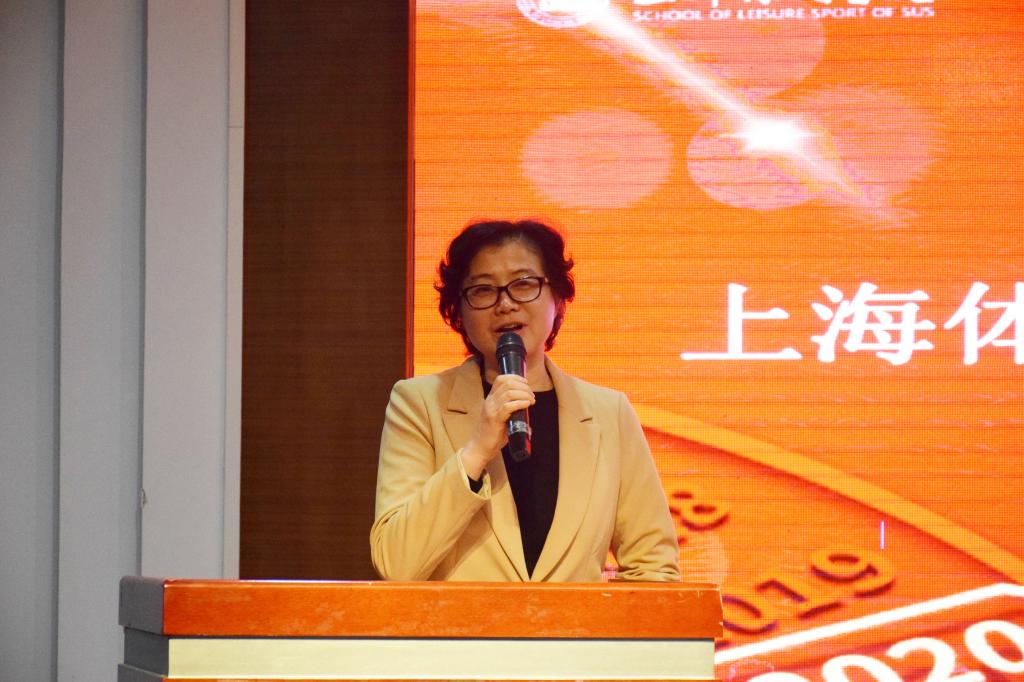 最后,校党委副书记、纪委书记詹萌发表讲话。她首先对获奖的同学表示祝贺,对参与汇报表演的同学表达了赞赏,对2019年休闲学院所取得的成就表达了肯定。特别对我院“红色筑梦三项赛”团队在第五届中国“互联网+”大学生创新创业大赛中斩获金奖、花样跳绳队在第十一届少数民族传统体育运动会中获一等奖、教工党支部获得全国党建工作的样版支部表示热烈的祝贺。她进一步指出2020年是我国全面建成小康社会的决胜之年,上海体育学院“双一流”建设也将面临检验,休闲学院的师生应该再接再厉,积极承担责任,学生应该有能力、会创新、有人格,同时也要加强理论基础知识的学习,讲话最后,她对学院所有师生表达了美好的新年祝愿,