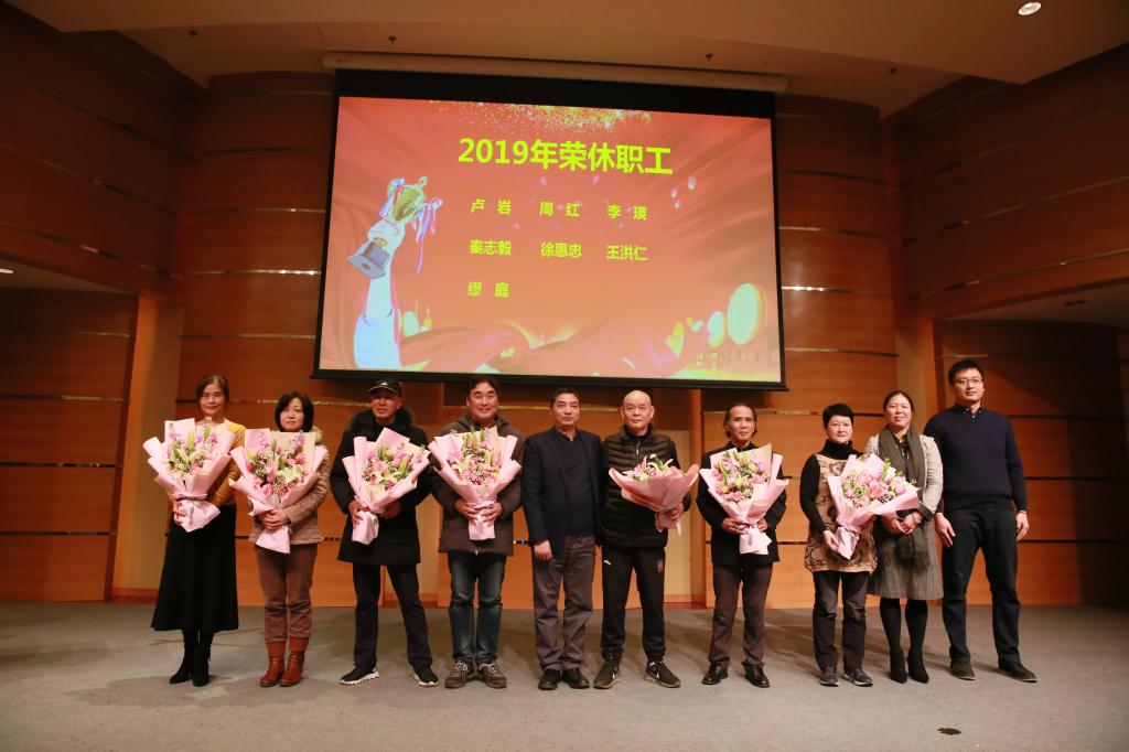 会上举行了后勤系统教职工荣休仪式,后勤处领导班子向2019年退休人员献花。全体参会人员观看了《后勤24小时》宣传片。