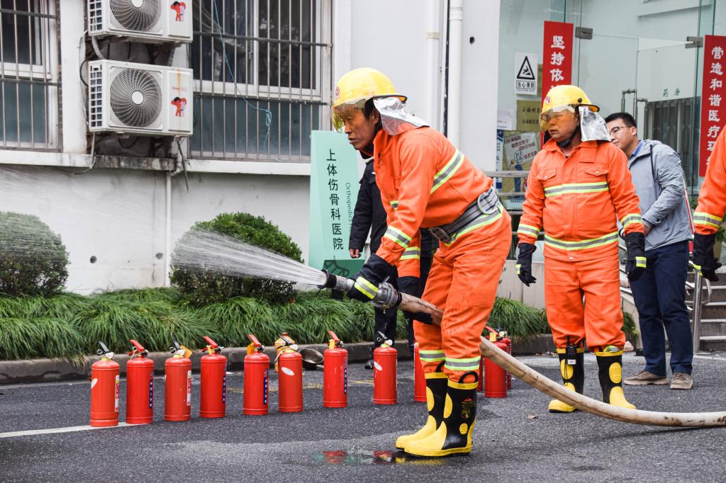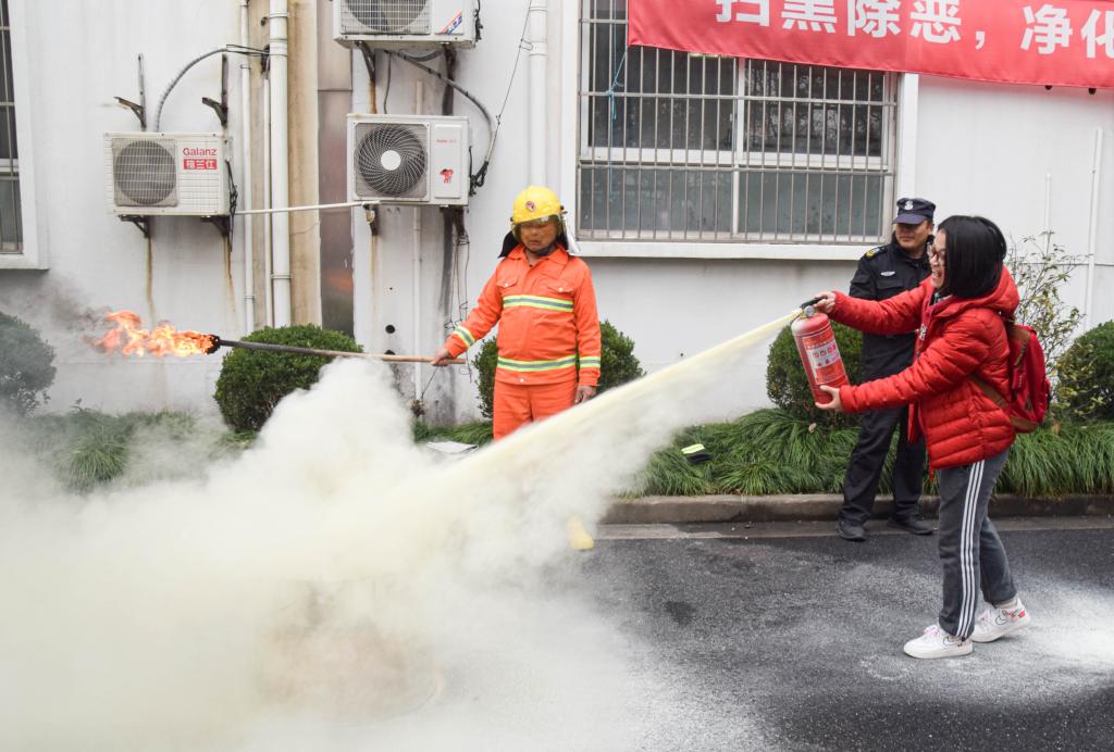 理论培训结束后,消防演练正式开始,通过模拟火灾发生的情景,“事故”现场实施紧急疏散,同学们按照要求用湿毛巾捂住口鼻,远离火源和烟雾点,顺墙靠右下楼快速“撤离”。与此同时,运科学院的师生以及微型消防队的成员操控灭火器材,及时对“事故”现场的“火情”进行压制,最后配合消防部门“扑灭”了明火。