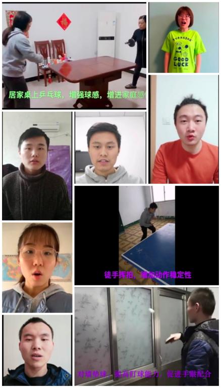 疫情期间,中乒院师生和少年班队员们在运动训练上毫不松懈,主动开展居家健身训练,保证体能储备和技术水平。在学院教学部、训练部统筹安排下,自1月底以来各位老师和教练员化身“线上达人”,制定安全、科学的居家训练计划,通过抖音、微信视频、打卡小程序等多种在线途径,积极指导和督促少年班队员在家里完成训练任务。
