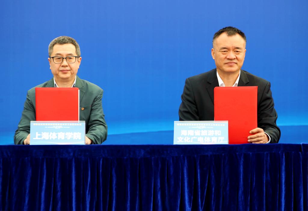 上海体育学院副院长施之皓与海南省旅文厅副厅长徐翔鸿代表双方签订了协议。