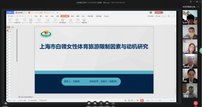 本次研究生毕业论文答辩采用网络视频形式,精心的组织和严谨的线上答辩流程不仅展现了休闲学院研究生毕业论文工作的规范性和严肃性,同时也让同学们感受到了毕业论文云答辩的仪式感,顺利完成了硕士论文答辩工作。