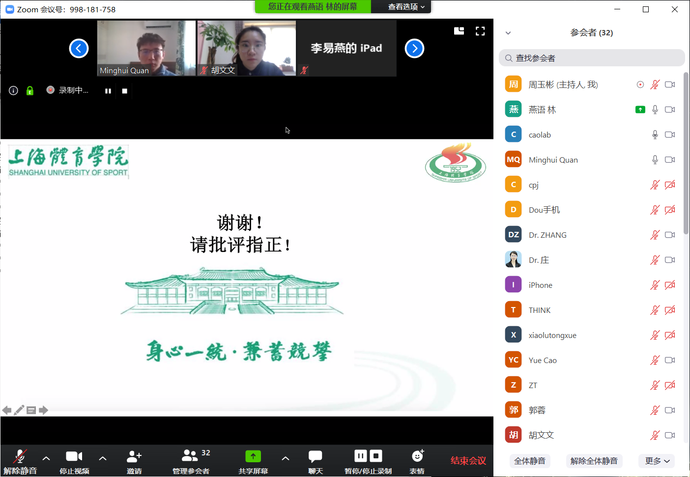 以学生为本,是运科学院一贯秉承的工作宗旨,虽然“云答辩”给运科学院学位工作提出一定挑战,但运科学院教师迎难而上,始终牢记为党育人、为国育才的时代使命,保持了组织严谨、流程规范、重视质量的科学精神。此次“云答辩”的圆满成功,不仅体现了学院坚强的组织凝聚力,同时也鼓舞学院师生抗疫必胜信心,将进一步依托新技术、新方法提升教育教学质量,推动运科学院教育教学水平向更高层次发展。