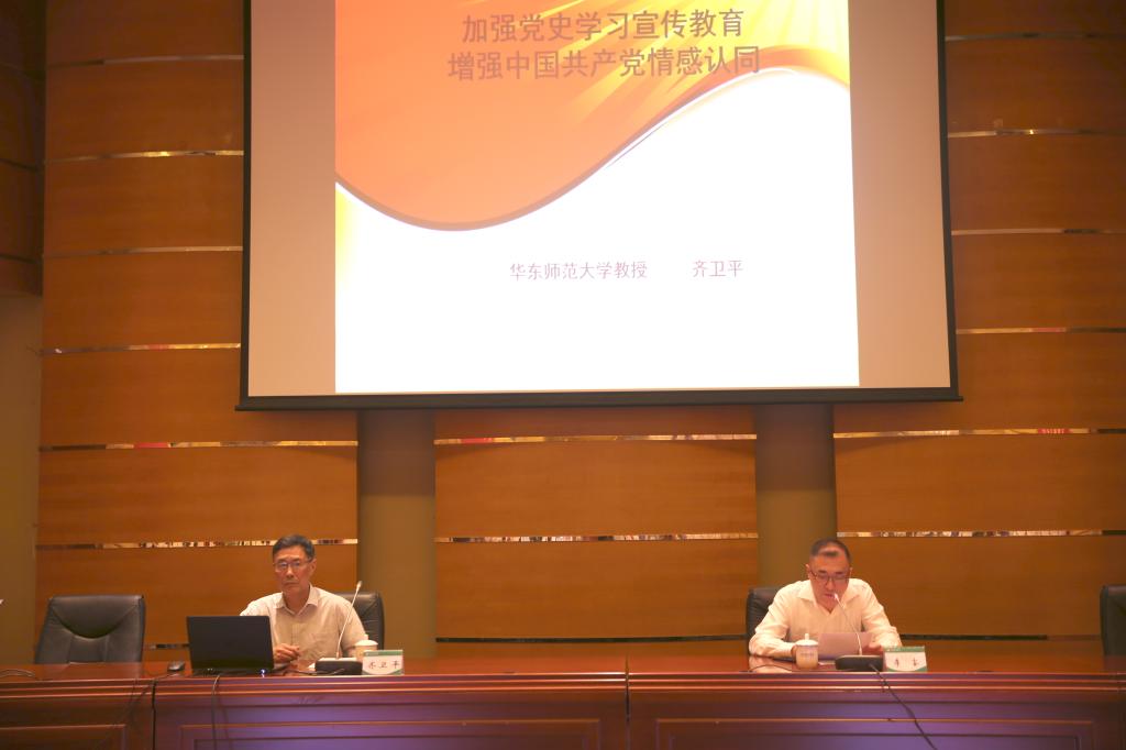 齐卫平教授以《加强党史学习宣传教育,增强中国共产党情感认同》为题进行宣讲。他指出,要深刻认识开展“四史”学习教育的重大意义,这是在全党开展“不忘初心、牢记使命”主题教育后和新冠疫情防控取得重大战略成果的背景下市委贯彻习近平总书记重要讲话精神的一项重要部署,旨在为进一步提振国民精气神,凝聚同心共筑中国梦的磅礴力量提供思想引领。开展“四史”学习教育要把握好“四史”的关系,坚持全面和重点相统一。必须深刻认识到党史、新中国史、改革开放史、社会主义发展史有紧密的关系,它们共同构成一部近现代中国的大历史。 齐卫平教授强调,党史学习教育的核心是要增强对中国共产党的情感认同,他从怎样认识中国共产党、中国共产党的历史功绩、中国共产党发展壮大的主要线索以及中国共产党发展壮大的基本经验等四个方面作了深入阐述,为大家生动诠释了中国共产党始终焕发青春活力的密钥 。