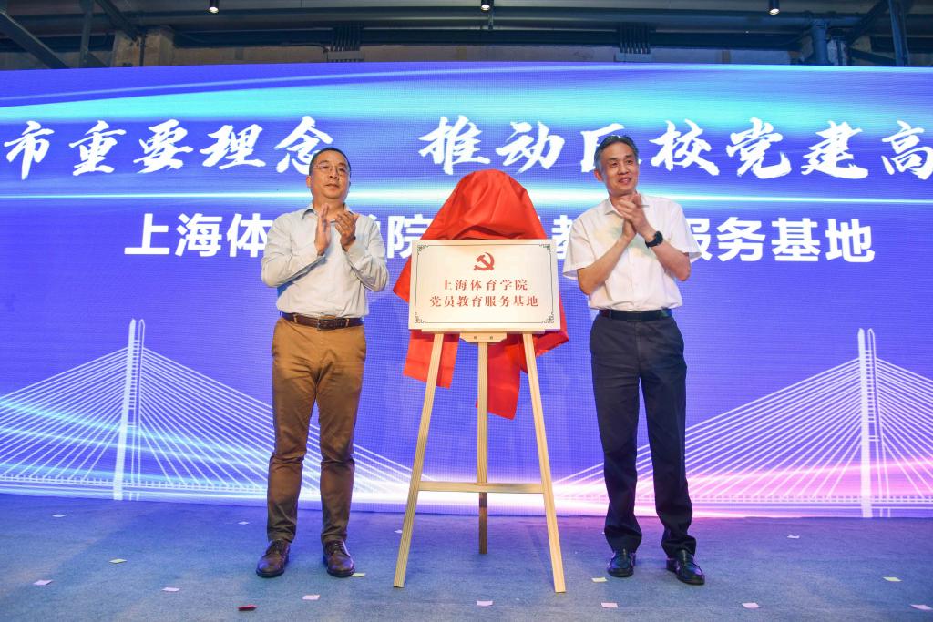 杨浦区委副书记邓小冬和上海体育学院党委副书记、副院长陈晓峰为上海体育学院党员教育服务基地揭牌。