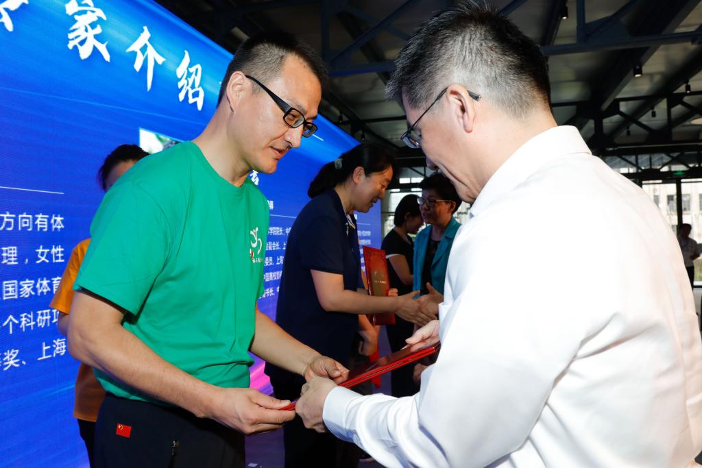 体能训练专家高炳宏教授和运动心理专家王小春等代表上台接过了“社区健康师”专家的聘书。今后,他们不仅是上海体育学院的教授、博导,更成为了定期为市民健康生活提供指导的“社区健康师”。