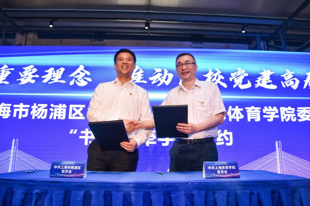 仪式上,杨浦区委书记谢坚钢和上海体育学院党委书记李崟进行了党建联建签约。
