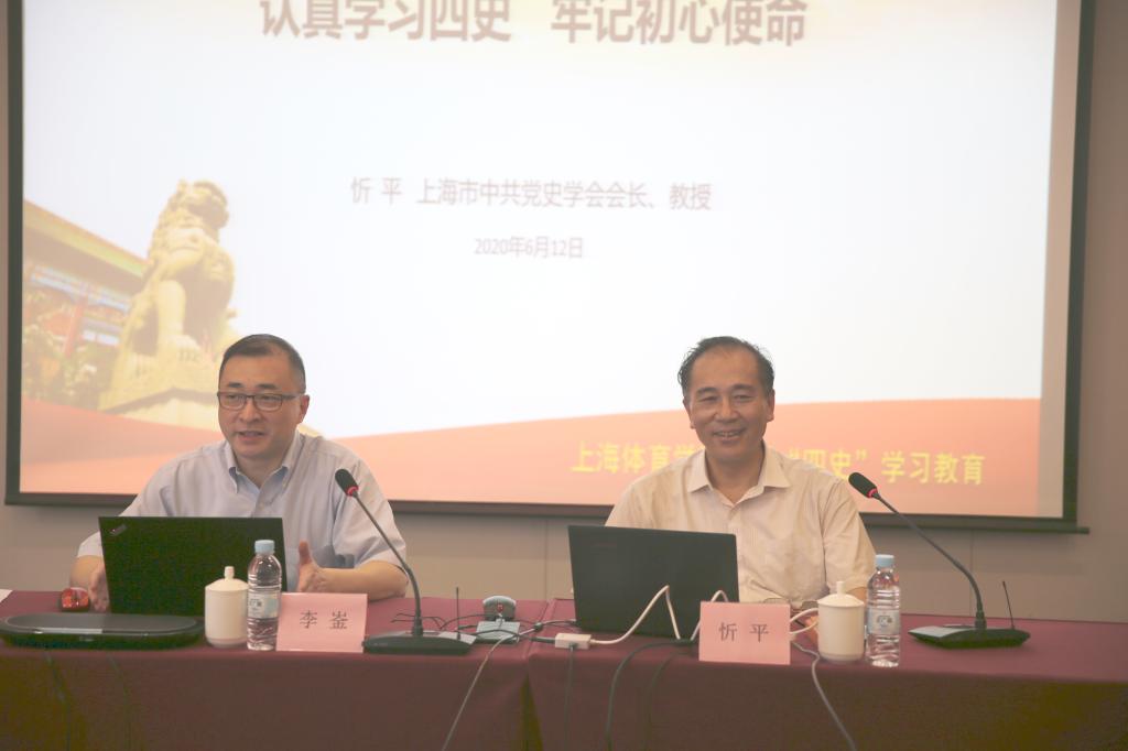本网讯 6月12日下午,SUNBET举行“四史”学习教育专题培训暨“崇德修身”教师沙龙活动。学校党委邀请上海市委“四史”专家宣讲团成员、上海市社联副主席、上海市中共党史学会会长忻平教授在体育交流中心第二会议室作专题报告。校党政领导、党委理论学习中心组成员、全体中层干部及相关教师参加学习会。党委书记李崟主持学习会。